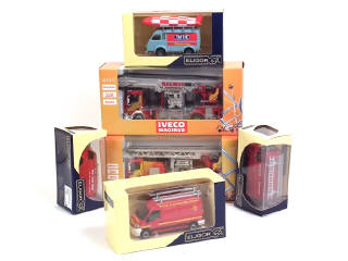 comprend : 2 IVECO MAGIRUS (ALP 375 & DLK 25-12 CS grandes échelles de pompiers avec boîte en état 'b'), 3 RENAULT 1000KG ('TATTJE', 'PERNET', MASTER fourgonnette de pompiers) & PEUGEOT J7 'POMPIERS DE L'ESSONNE'