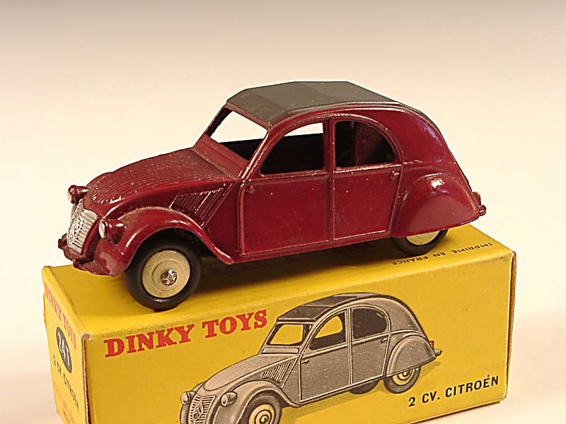 DINKY TOYS (FRANCE) 24T CITROËN 2CV (version avec 3 feux arrière) grenat, jantes crème