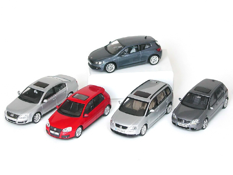miniatures reproduisant les modèles : PASSAT, TOURAN 2003, GOLF GTi, GOLF TD & SCIROCCO - on y retrouve les marques : MINICHAMPS, HONGWELL, AUTO ART & NOREV