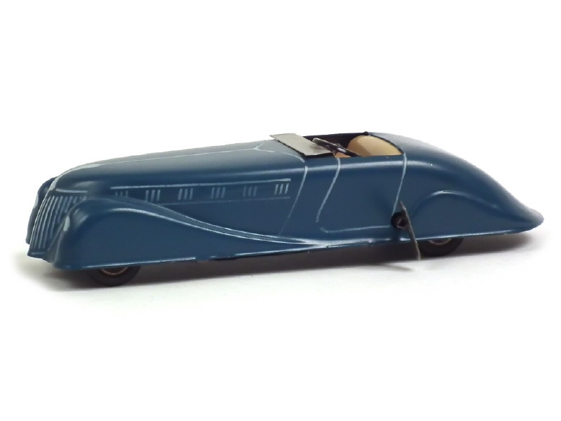 longueur 23 cm - moteur à clef (fonctionne) - version de 1948, sans personnage ni logo - quelques traces d'oxydation sur le moteur & les jantes - volant retouché
