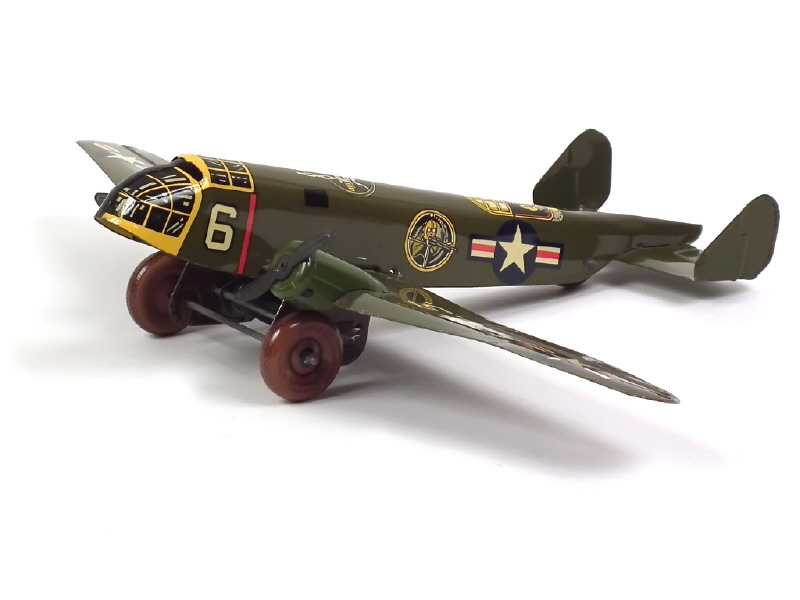 MARX TOYS (USA) Bombarbier bimoteur américain de la 2ème guerre mondiale en tôle lithographiée kaki & jaune