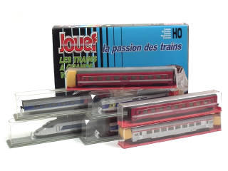 comprend : EUROSTAR (4 éléments regroupés dans un coffret), TGV ATLANTIQUE (7 éléments), 2 voitures de voyageurs de première classe LE CAPITOL & voiture de voyageurs TRANSEUROPE EXPRESS - non testés