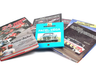 comprend : LES VOITURES DE 1950 A 1970, LES GRANDS CONSTRUCTEURS D'ANGLETERRE, FACEL-VEGA, LES FABULEUSES VOITURES AMERICAINES, L'ANNEE ECHAPPEMENT N°4 (1983/1984) & n°5 (1984/1985), 24 HEURES DU MANS 1979 & AUTO-JAHR 1980/1981 (en langue allemande) - on y retrouve les éditeurs : EPA, GRUND, EDITA, PUBLI-INTER & ACLA