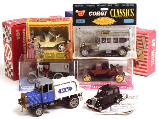 comprend : ROLLS-ROYCE SILVER GHOST 1912, LANDAU PARK ROYAL 1912, RENAULT camion d'artillerie 1907 (un pneu coupé), FIAT BALILLA (jantes très légèrement fondues & carrosserie plus ou moins déformée), FORD T, MERCEDES 1905, GREGOIRE 1910 & HENSCHEL camion-citerne 'ARAL' - on y retrouve les marques : ZISS-MODELL, EKO, ANGUPLAS, RW-MODELL, SAFIR, MINIALUXE & CORGI TOYS