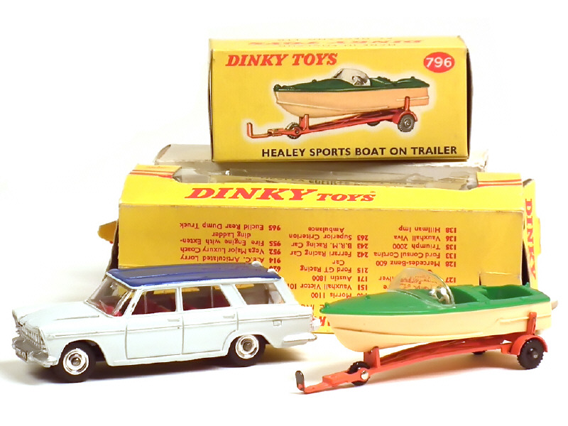 comprend : FIAT 2300 (état 'B.c') & HEALEY SPORT BOAT (état 'A.b') avec remorque (en état 'C' & légèrement déformée)
