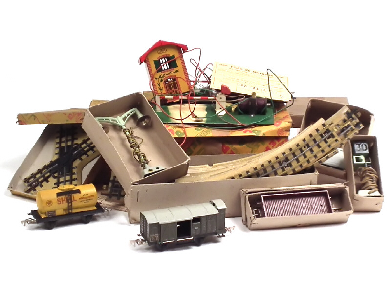 états de 'B' à 'C' - comprend : wagon-citerne 'SHELL', plate-forme, couvert avec guérite, 16 rails, un croisement, un passage à niveau électrique & 3 accessoires - avec boîtes (état de 'c' à 'd') - quelques petits manques