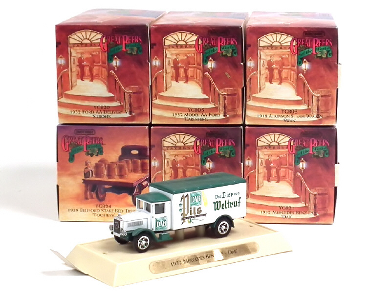 collection 'GREAT BEERS' - miniatures reproduisant les modèles : ATKINSON, BEDFORD, FORD (3 exemplaires différents) & MERCEDES-BENZ - carrosseries poussiéreuses
