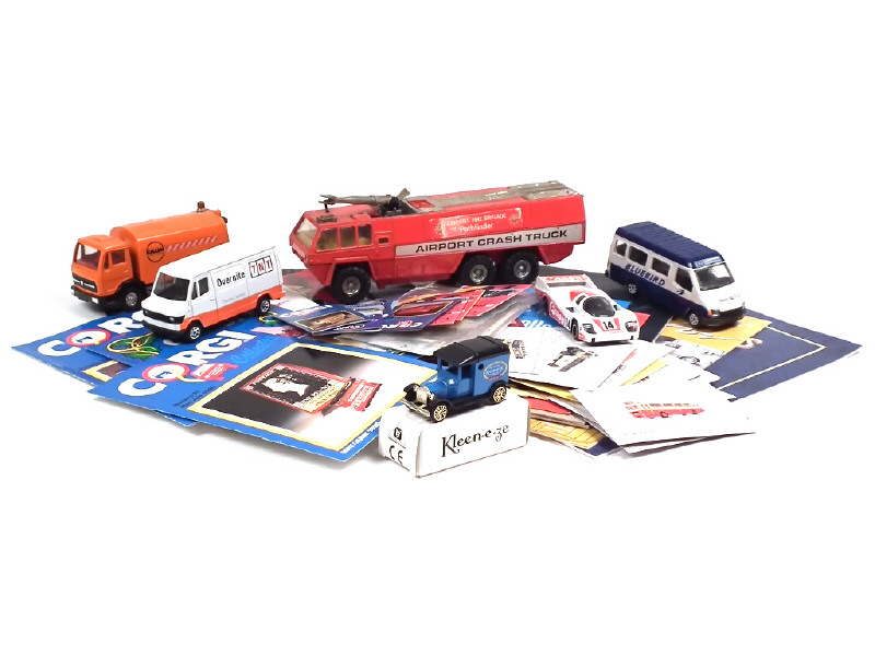 états de 'A+' à 'E' - différentes échelles - comprend : PATHFINDER camion de pompiers d'aéroport, FAUN arroseuse-balayeuse, FORD TRANSIT 'BLUEBIRD', MERCEDES-BENZ 207 'TNT', PORSCHE 956 & FORD van 'KLEEN-E-ZE - on y joint un lot important de catalogues de la marque