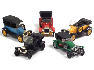 comprend : FORD modèle T (3 exemplaires différents), BENTLEY 1927 & DAIMLER 1910 (en état 'C') - carrosseries légèrement encrassées