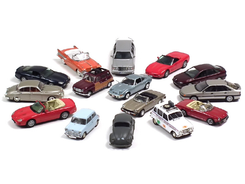 miniatures reproduisant les modèles : BUICK, AUSTIN, CHEVROLET, FIAT (2 exemplaires différents), JAGUAR (3 exemplaires différents), MERCEDES, OPEL, VOLKSWAGEN & RENAULT (4 exemplaires différents) - quelques petits manques