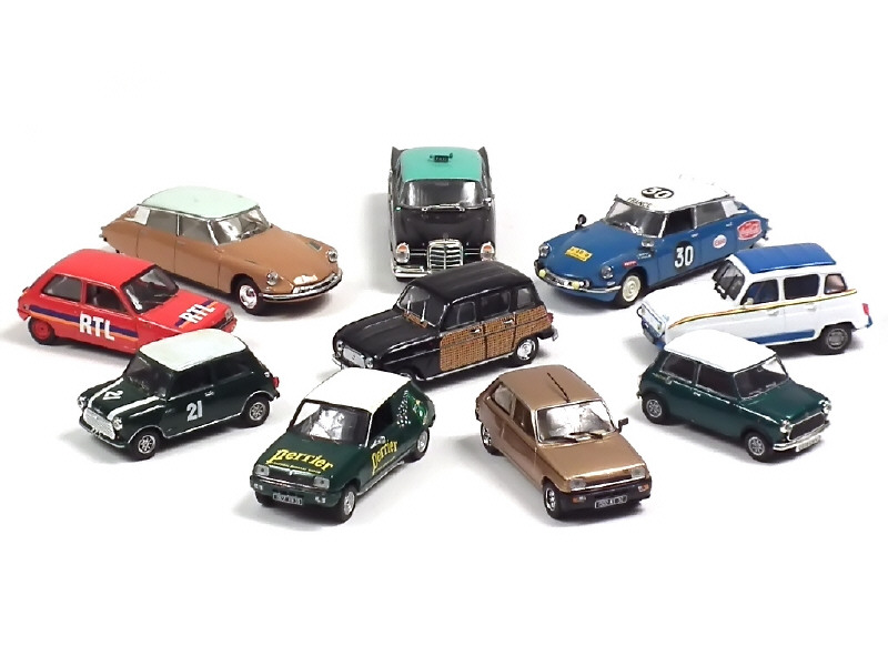 miniatures reproduisant les modèles : CITROEN (2 exemplaires différents), MERCEDES, MORRIS (2 exemplaires différents) & RENAULT (5 exemplaires différents) - quelques petits manques