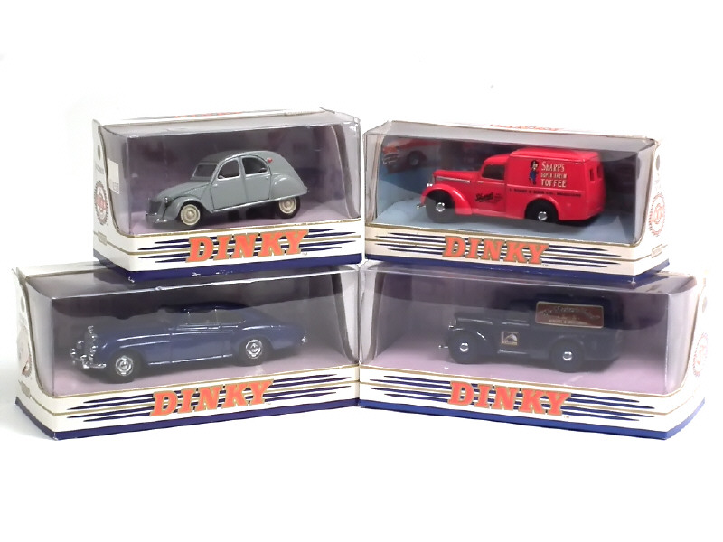 comprend : COMMER 8 fourgonnette 'HIS MASTER VOICE', 'SHARPS' (blister déchiré), BENTLEY CONTINENTAL & CITROEN 2CV (blister de boîte déchiré)