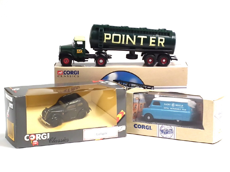 comprend : SCAMMELL HIGHWAYMAN semi-remorque citerne 'POINTER' (manque rétroviseurs), FORD POPULAR & BEDFORD fourgonnette 'RAC' (boîte en état 'c')