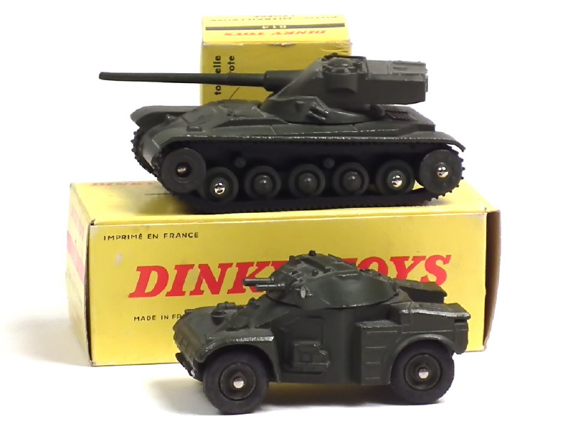comprend : char AMX 13 (manque extrémité de canon & antenne cassée) & AML PANHARD (manque antennes) - quelques manques de papier sur les boîtes