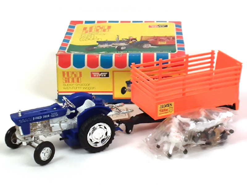 HOVER (HONG KONG) 801 FORD 5000 Tracteur avec remorque bétaillère bleu, gris & orange