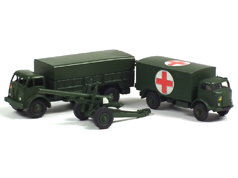 DINKY TOYS (GB) Ensemble de 2 camions militaires & un canon