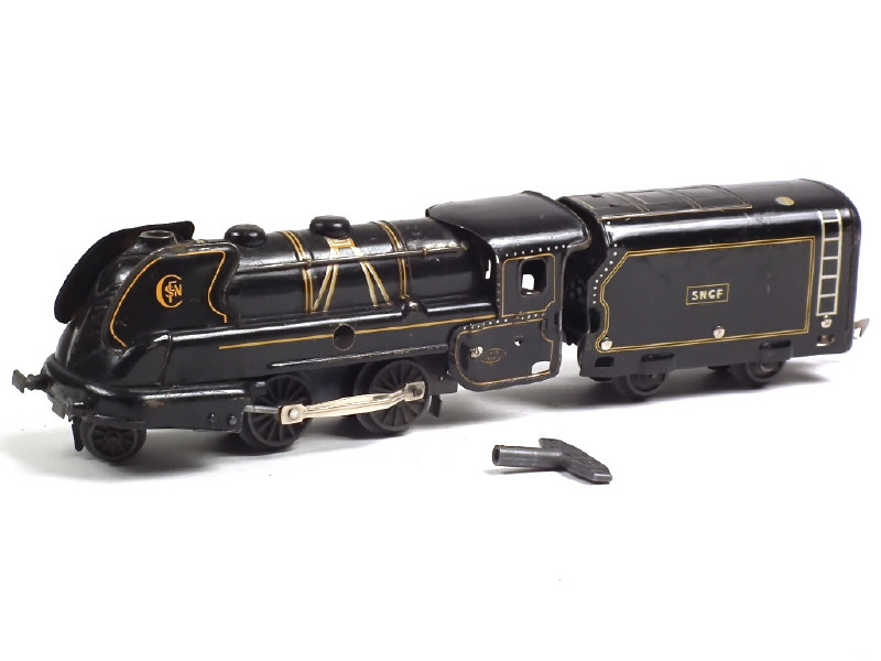 moteur à clef (à revoir) - avec clef - l'état est dû en grande partie à une importante oxydation du côté droit de la locomotive - quelques déformations & pièces non d'origine