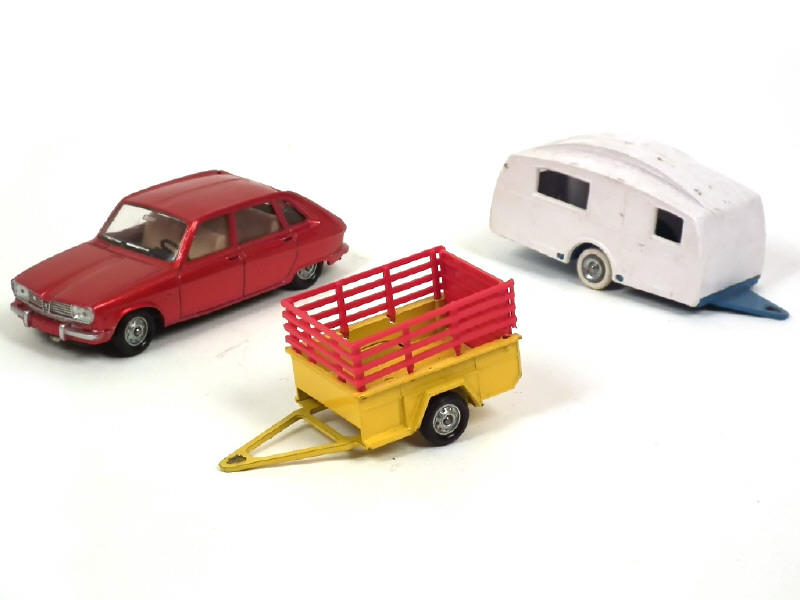 on y joint : une caravane (manque pneus) & une remorque à clairevoies