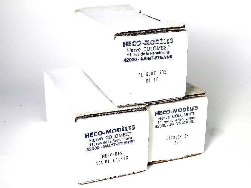 miniatures reproduisant les modèles : CITROEN BX GTi, PEUGEOT 405 Mi 16 & MERCEDES 500 SL KOENING - boîtes tachées