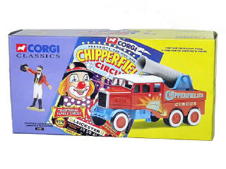 CORGI TOYS (GB) 17801 SCAMMELL Camion de cirque avec canon humain 'CHIPPERFIELD'S CIRCUS' rouge, bleu & blanc