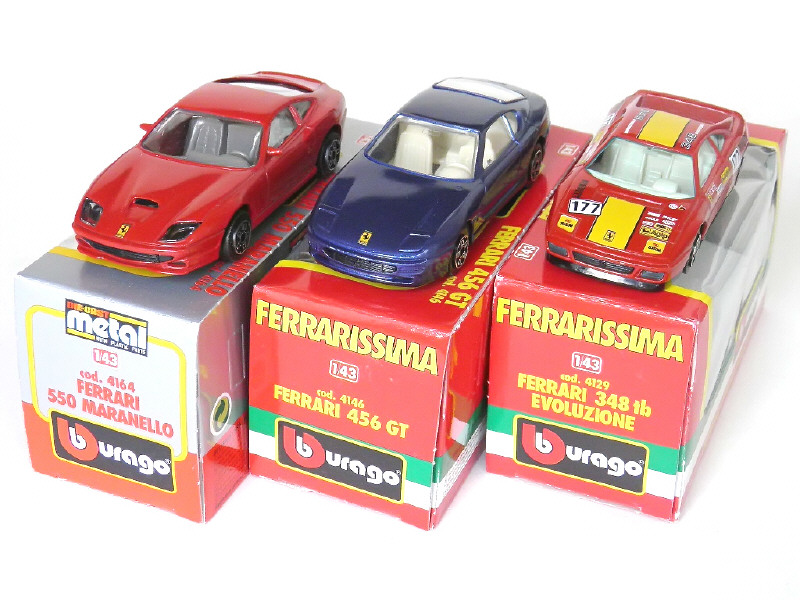 miniatures reproduisant les modèles : 550 MARANELLO, 456GT & 348 TB EVOLUZIONE
