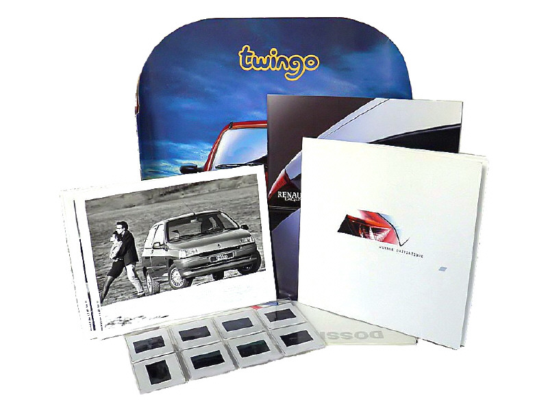 RENAULT (FRANCE) Ensemble de 7 catalogues, 6 dépliants, 6 photos de presse, un dossier de presse & une planche de diapositives