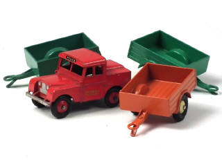 DINKY TOYS (GB) Ensemble d'une LAND ROVER 'MERSEY TUNNEL' & 3 remorques à un essieu