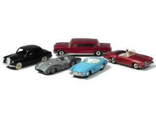 états de 'C' à 'R' - comprend : 190 SL, 600 PULLMAN, de compétition, 300 SL (pare-brise fendu) & 220 - on y retrouve les marques : CIJ, CORGI TOYS, MARKLIN & SOLIDO - quelques petits manques & certaines partie non d'origine