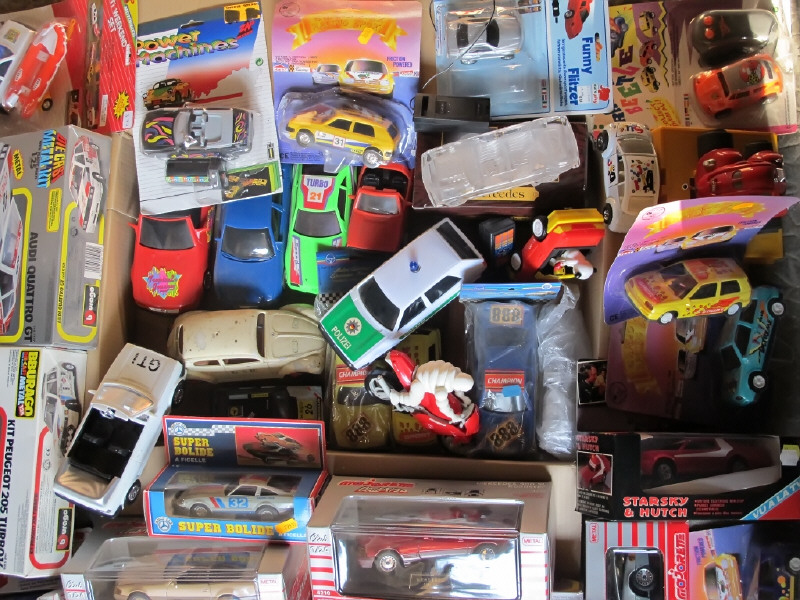 Etat de A à E - beaucoup de modèles en boîte - échelles principalement au 1/24 et 1/32ème - On y retrouve les marques BURAGO, MAJORETTE, REVELL, EURO PLAY, PEPE, marques divers, etc. - on y joint une moto promotionnelle pour MICHELIN et la voiture de STARSKY & HUTCH (A.a)