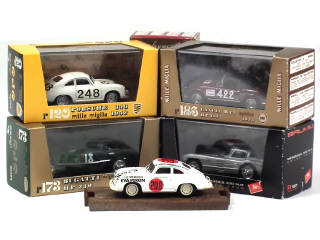 comprend : PORSCHE 356 (2 exemplaires différents), LANCIA B24, MERCEDES 300 SLR & BUGATTI TYPE 59