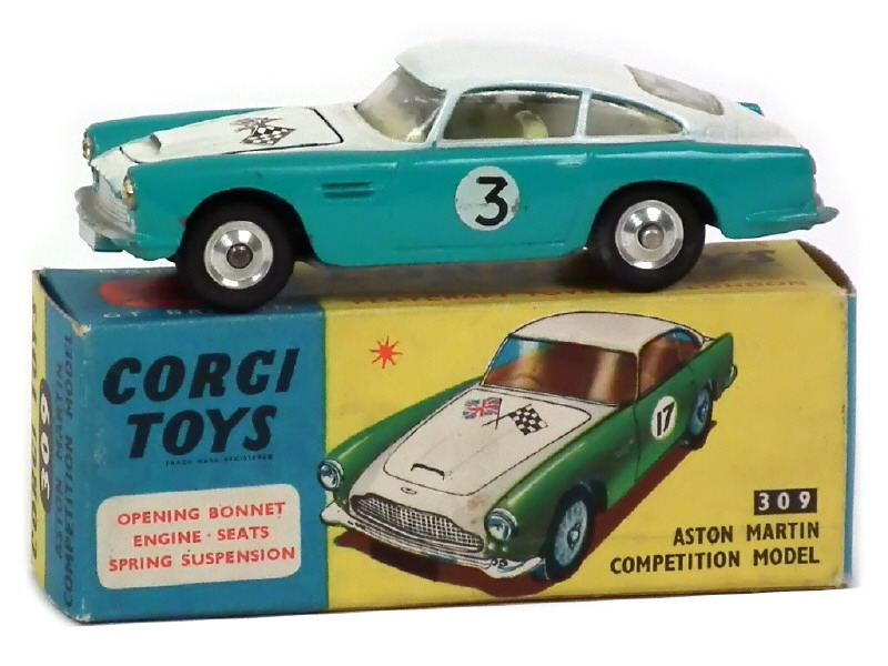 CORGI TOYS (GB) 309 ASTON MARTIN DB 4 Compétition turquoise & blanc