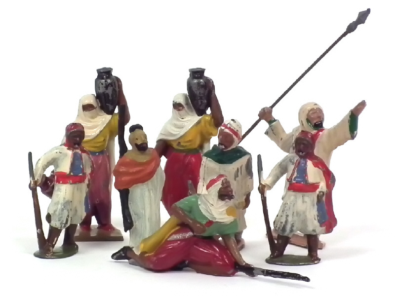 états de 'C' à 'E' - réalisation en plomb creux - différentes échelles - comprend : un lancier, 2 femmes voilées avec jarre & 5 personnages avec fusil - quelques petits manques & retouches