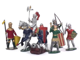 DIVERS Ensemble de 7 personnages du Moyen Âge & un canon