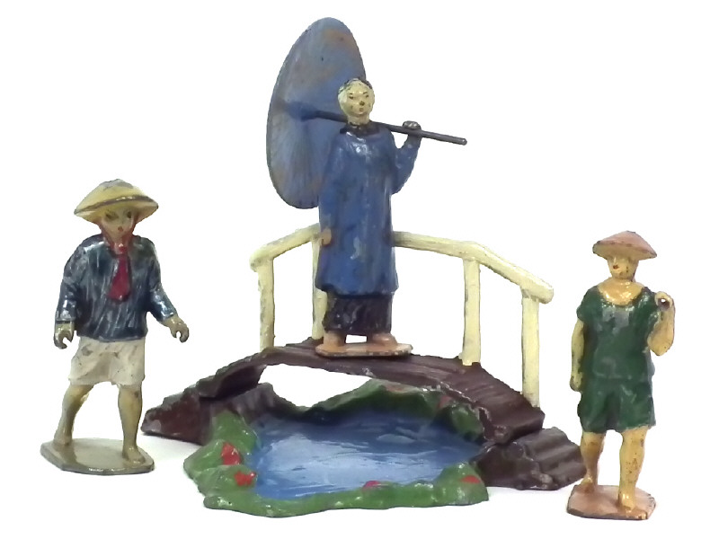 DIVERS Ensemble de 3 personnages asiatiques & 2 éléments de décor