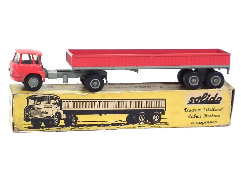 SOLIDO (FRANCE) 302 WILLEME Semi-remorque plateau à ridelles TITAN framboise & gris