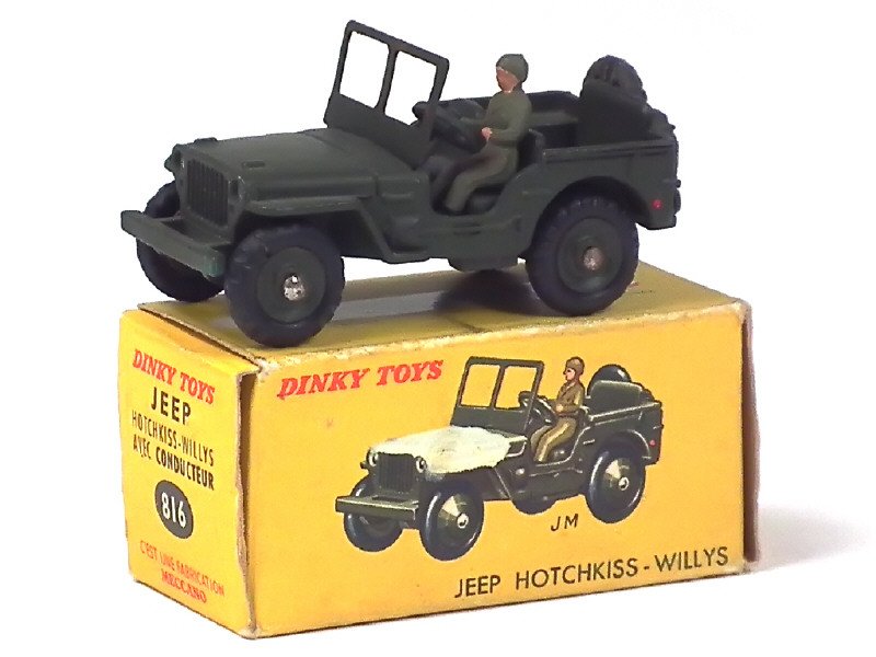 DINKY TOYS (FRANCE) 816 JEEP WILLYS (version avec conducteur, crochet & jantes concaves) kaki