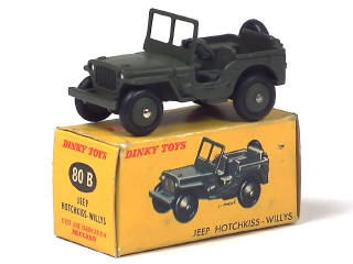 DINKY TOYS (FRANCE) 80B JEEP WILLYS (version avec conducteur, sans crochet) kaki