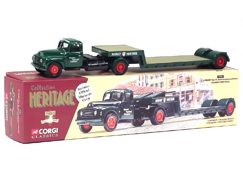 CORGI TOYS (GB) 74201 CITROËN 55 Semi-remorque surbaissé 'BOURGEY MONTREUIL' vert & noir