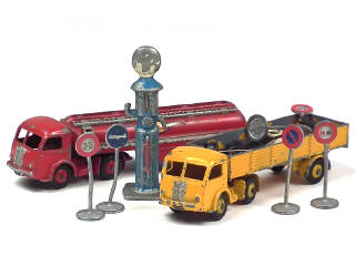 comprend : CITERNE 'ESSO' & KODAK (manque bâche) - on y joint 5 panneaux de signalisation & une pompe à essence de la marque COFALU