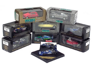 comprend : TYRRELL 003, FORD BENETTON B194, WILLIAMS RENAULT FW18, FW 14, MATRA MS 80, FERRARI 312 T, CITROEN 2CV 'POMPIERS (éditiion limitée 4275/5000 exemplaires & RENAULT LAGUNA - on y retrouve les marques : VITESSE & ONYX - petits manques & parties cassées