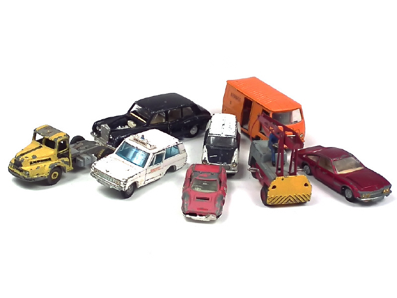 états de 'E' à 'R' - comprend : PEUGEOT J7, 404, UNIC, grue SALEV, ROLLS ROYCE, MONTEVERDI, FERRARI & RANGE ROVER - on y retrouve les marques : DINKY TOYS FRANCE & GB