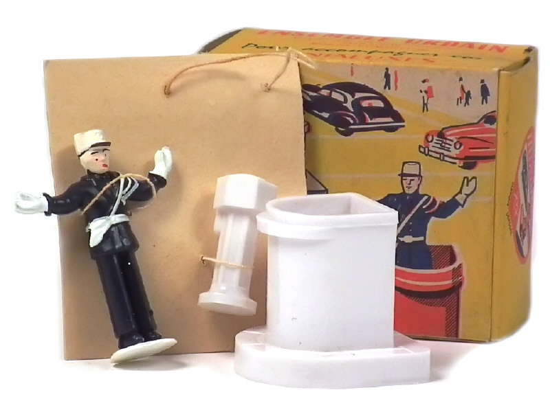 contient : un agent de la circulation, une borne lumineuse (sur socle de présentation) & un mirador