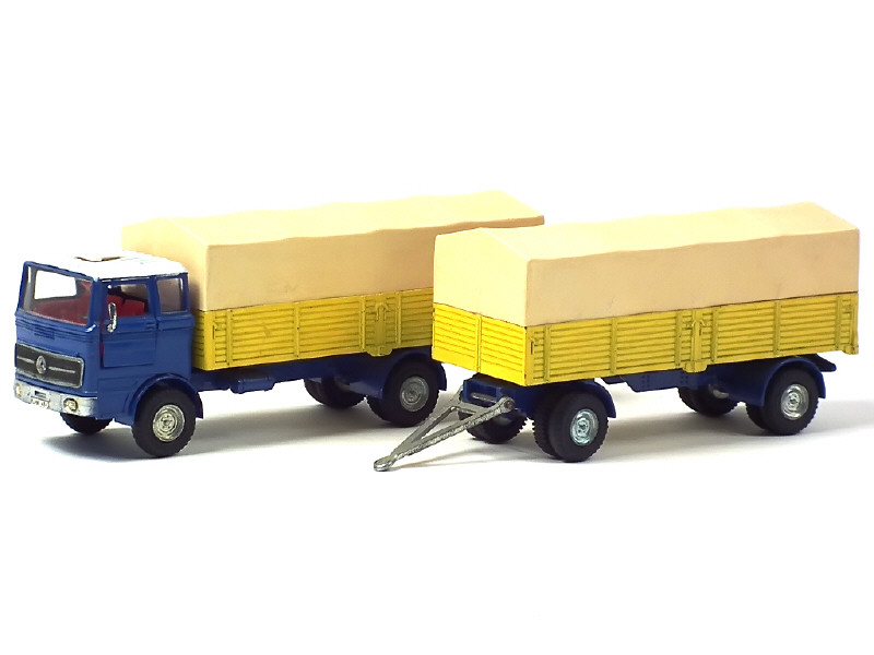DINKY TOYS (GB) 917 MERCEDES Bâché avec remorque bâchée bleu foncé & jaune, bâches beige