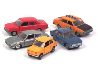 comprend : FIAT 132 (2 modèles différents dont un en état 'C' avec 2 éclats majeurs sur un montant de portière), BERTONE & ALFA ROMEO GT - on y joint une FIAT 128 de la marque POLITOYS - petits détails de peinture ajoutés