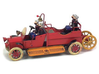 réalisation en tôle peinte - longueur 24 cm - moteur à inertie (fonctionne) - avec direction & pompiers en plâtre