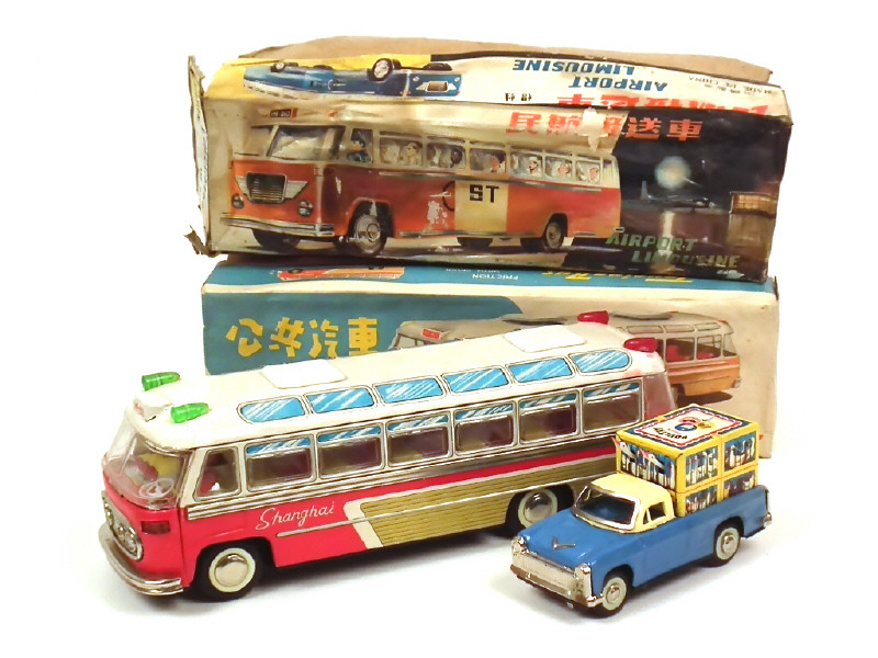 M.F. (CHINE) 830 Autocar en tôle lithographiée rouge, blanc & doré