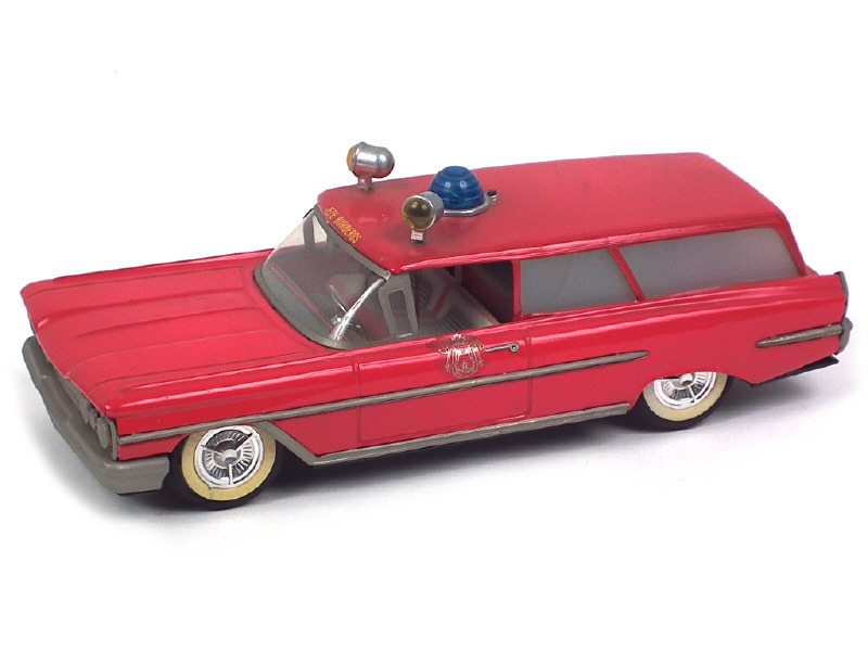 longueur 32 cm - moteur à friction (fonctionne avec bruiteur) & gyrophare électrique (non testé) - traces d'oxydation sur quelques parties chromées - pare-brise légèrement déformé