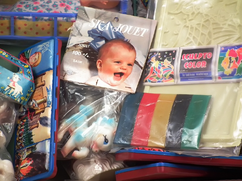 comprend notamment : boîtes de peinture, kit de modelages, règles d'écolier, dinettes, lits de poupées, etc ... - possibilités de petits manques - on y joint un carton d'expédition de la marque MINIALUXE en état 'c'