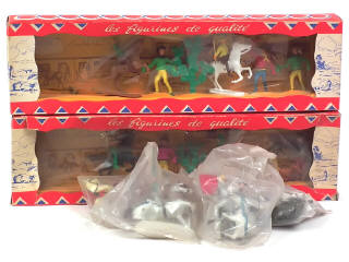 comprend : 2 coffrets WESTERN (contenant 10 figurines & 2 accessoires), sachets de 6 soldats, 6 indiens & 2 chevaliers - possibilité de petits manques