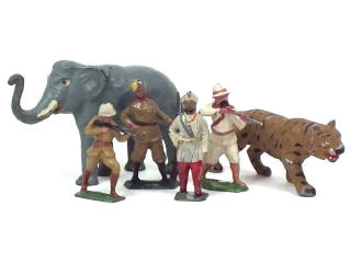 DIVERS Ensemble de 3 soldats, un chasseur, un éléphant & un tigre